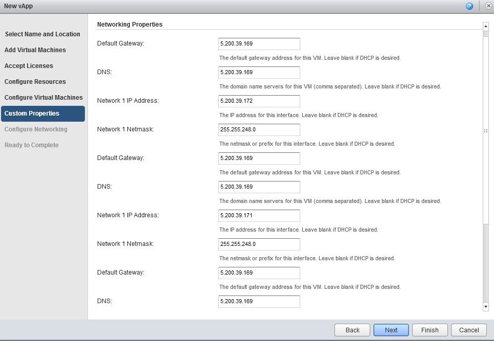 - На странице Custom Properties необходимо снова задать корректные IP-адреса, которые были определены на предыдущем этапе.